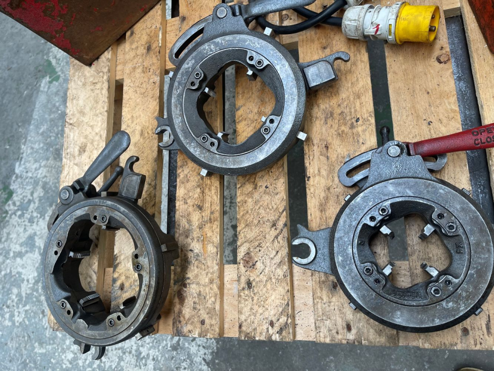The heavy-duty rotary forward/off/reverse motor control, combined with an integral foot switch, provides safe and precise operational control. A hammer-type chuck with replaceable rocker-action jaw inserts ensures secure pipe gripping and long service life.