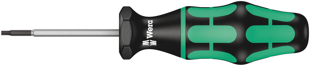 Wera torque screwdriver with fixed torque for hexagon socket screws. Tamperproof and with a slim hex blade. Unlimited torque for loosening seized screws. Multi-component Kraftform handle for pleasant, ergonomic working that prevents blisters and calluses. Hard gripping zones for high working speeds whereas soft zones ensure high torque transfer. Comes with Hex-Plus profile which avoids any rounding of the screw head. The Black Point tip offers high corrosion protection and an exact fit.
